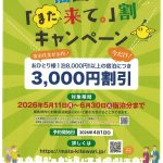 ふくしまデステイネーションキャンペーン福島県「また来て。」割キャンペーン始まります。予約開始日:4月1日(水)対象期間:5月11日(月)~6月30日(火)宿泊分まで -